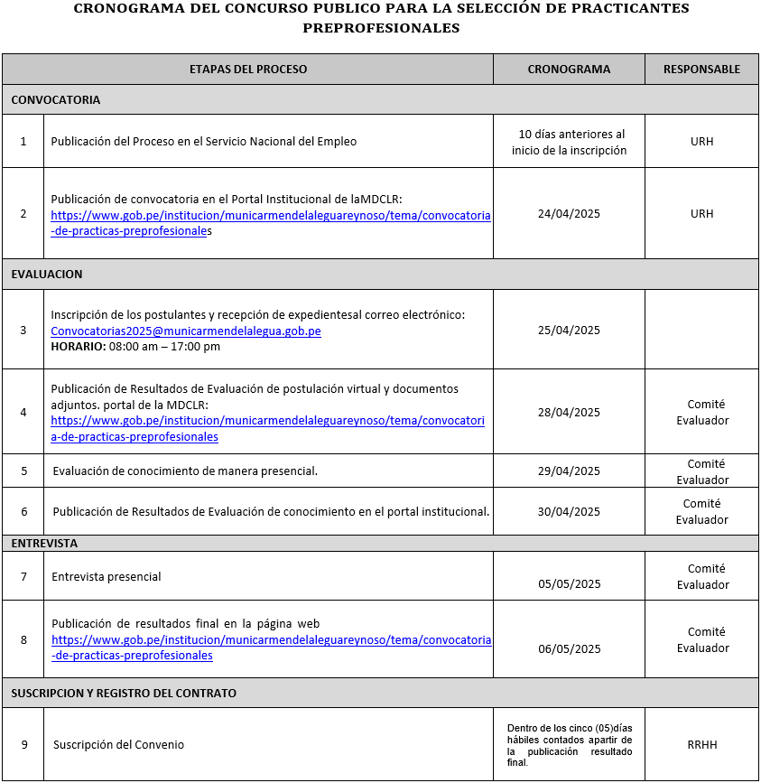 CRONOGRAMA DE CONVOCATORIA 001-2025