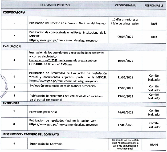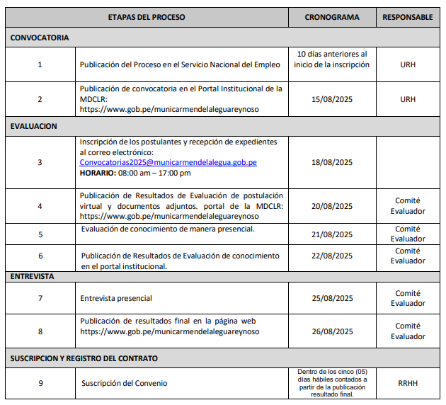 CRONOGRAMA DE CONVOCATORIA 003-2025
