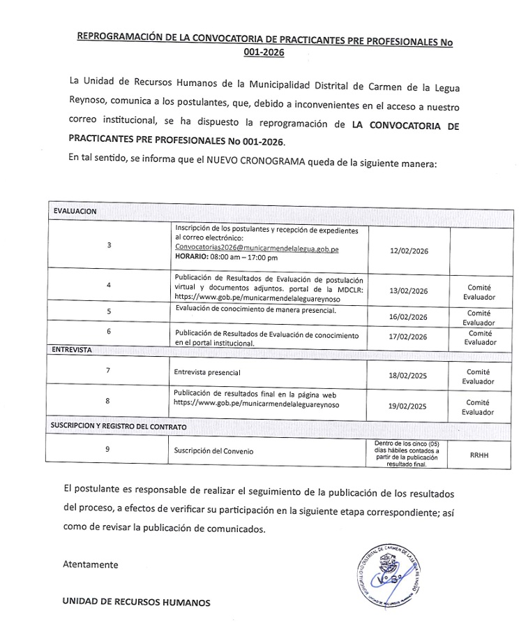 CRONOGRAMA DE CONVOCATORIA 001-2026